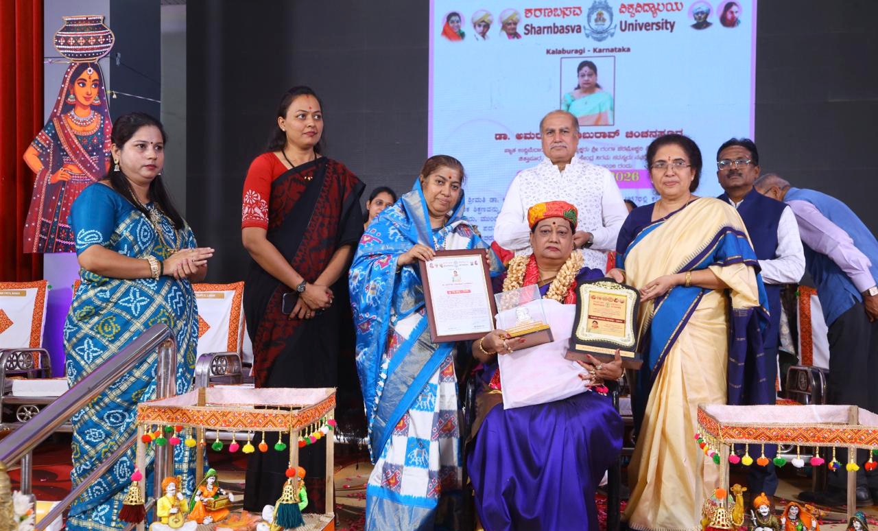 ಕಲಬುರಗಿ: ನಗರದ ದೊಡ್ಡಪ್ಪ ಅಪ್ಪಾ ಸಭಾ ಮಂಟಪದಲ್ಲಿ ಶರಣಬಸವ ವಿಶ್ವವಿದ್ಯಾಲಯ ವತಿಯಿಂದ ಹಮ್ಮಿಕೊಂಡಿದ್ದ ಅಂತರಾಷ್ಟ್ರೀಯ ಮಹಿಳಾ ದಿನಾಚರಣೆ ಸಮಾರಂಭದಲ್ಲಿ ಚಿತ್ತಾಪುರಿನ ಶ್ರೀ ಗಂಗಾಪರಮೇಶ್ವರಿ ಶಿಕ್ಷಣ ಸಂಸ್ಥೆಯ ಅಧ್ಯಕ್ಷೆ ಡಾ.ಅಮರೇಶ್ವರಿ ಬಾಬುರಾವ್ ಚಿಂಚನಸೂರ ಅವರಿಗೆ ಶರಣಬಸವೇಶ್ವರ ವಿದ್ಯಾವರ್ಧಕ ಸಂಘದ ಅಧ್ಯಕ್ಷರು ಹಾಗೂ ಶರಣಬಸವ ವಿಶ್ವವಿದ್ಯಾಲಯದ ಕುಲಾಧಿಪತಿ ಮಾತೋಶ್ರೀ ಡಾ. ದಾಕ್ಷಾಯಿಣಿ ಎಸ್ ಅವ್ವಾಜೀ ರವರು ಸ್ತ್ರೀ ರತ್ನ ಪ್ರಶಸ್ತಿ -2026 ಪ್ರದಾನ ಮಾಡಿ ಸತ್ಕರಿಸಿದರು.