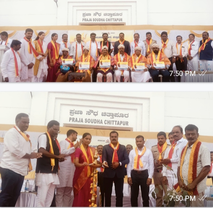 ವಿವಿಧ ಕ್ಷೇತ್ರದ ಸಾಧಕರಿಗೆ ಸನ್ಮಾನ: ಮಲ್ಲಿಕಾರ್ಜುನ ಭೃಂಗಿಮಠ ದಂಡೋತಿ (ಸಾಹಿತಿಗಳು), ಈಶ್ವರಮ್ಮ ಯಾದವ್ ದಿಗ್ಗಾಂವ (ಕನ್ನಡಪರ ಹೋರಾಟಗಾರರು), ಸಂಗಣ್ಣ ಎಸ್. ಅಲ್ದಿ ಮಲಕೂಡ (ರಂಗಭೂಮಿ ಕಲಾವಿದರು), ಬುರ್ರಕಥೆ ಶಾಂತಮ್ಮ ರಾಮತೀರ್ಥ (ಜಾನಪದ ಕಲಾವಿದರು), ಪೋಮು ಪಾಂಡು ಚವ್ಹಾಣ ಚಿತ್ತಾಪುರ (ಜಾನಪದ ಕಲಾವಿದರು), ಶಿವುಕುಮಾರ ಸುಣಗಾರ ನಾಲವಾರ (ಕನ್ನಡಪರ ಹೋರಾಟಗಾರರು) ಹಾಗೂ ಕನ್ನಡ ಭಾಷೆಯಲ್ಲಿ ಅತಿ ಹೆಚ್ಚು ಅಂಕ ಪಡೆದ ಎಸ್ಸೆಸ್ಸೆಲ್ಸಿ ವಿದ್ಯಾರ್ಥಿಗಳಿಗೂ ಸನ್ಮಾನಿಸಿ ಗೌರವಿಸಲಾಯಿತು.