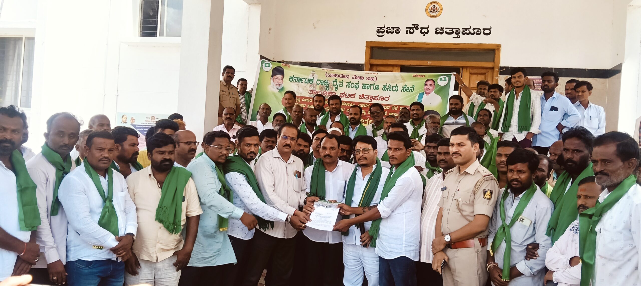 ಚಿತ್ತಾಪುರ: ತಾಲೂಕನ್ನು ಅತಿವೃಷ್ಟಿ ಪೀಡಿತ ತಾಲೂಕು ಎಂದು ಘೋಷಿಸಿ, ಎಕರೆಗೆ 25 ಸಾವಿರ ಬೆಳೆ ಹಾನಿ ಪರಿಹಾರ ನೀಡಬೇಕು ಮತ್ತು ರೈತರ ಸಾಲ ಮನ್ನಾ ಮಾಡಬೇಕು ಎಂದು ಒತ್ತಾಯಿಸಿ ಕರ್ನಾಟಕ ರಾಜ್ಯ ರೈತ ಸಂಘ ಹಾಗೂ ಹಸಿರು ಸೇನೆ (ವಾಸುದೇವ ಮೇಟಿ ಬಣ) ನೇತೃತ್ವದಲ್ಲಿ ಪ್ರತಿಭಟನಾ ಮೆರವಣಿಗೆ ನಡೆಸಿದ ರೈತರು ಮುಖ್ಯಮಂತ್ರಿಗಳಿಗೆ ಬರೆದ ಮನವಿ ಪತ್ರವನ್ನು ತಹಸೀಲ್ದಾರ್ ಅವರಿಗೆ ಸಲ್ಲಿಸಿದರು.
