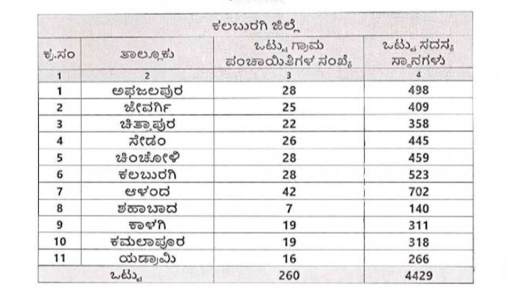 ಚಿತ್ತಾಪುರ: ಕರ್ನಾಟಕ ಗ್ರಾಮ ಸ್ವರಾಜ್ ಮತ್ತು ಪಂಚಾಯತ್ ರಾಜ್ ಅಧಿನಿಯಮ, 1993 ರ ಪ್ರಕರಣ 5ರಡಿ ಹಾಗೂ 308(ಇ) (ಎಫ್) ರ ಪ್ರಕರಣದಡಿ ಪ್ರದತ್ನವಾದ ಅಧಿಕಾರವನ್ನು ಚಲಾಯಿಸಿ, ಕರ್ನಾಟಕ ಪಂಚಾಯತ್ ರಾಜ್ ಸೀಮಾ ನಿರ್ಣಯ ಆಯೋಗವು ಚಿತ್ತಾಪುರ ತಾಲೂಕಿನ ಆಯ್ಕೆಯಾಗುವ ಗ್ರಾಮ ಪಂಚಾಯತಿ ಚುನಾಯಿತ ಸದಸ್ಯರ ಸಂಖ್ಯೆಯನ್ನು ನಿಗದಿಪಡಿಸಿದೆ.