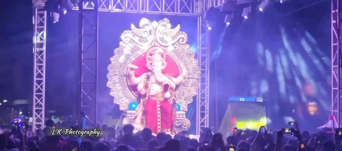 ವೇದಿಕೆಯ ಮೇಲೆ ಗಜಾನನನ ಮುಖ ಪರದೆಯನ್ನು ಸರಿಸುತ್ತಿದ್ದಂತೆಯೇ ನೆರೆದ ಭಕ್ತರಿಗೆ ಗಣೇಶನ ದರ್ಶನ ಸಿಕ್ಕಿತು. ಭಕ್ತರ ಘೋಷಣೆ, ಸಂಗೀತ, ನೃತ್ಯ, ಹಾಗೂ ವೀರ ಸಾವರ್ಕರ್ ಸೇನಾ ಯುವಕರ ಭಕ್ತಿಯ ಅಡಂಬರದಲ್ಲಿ ಪಟ್ಟಣವೇ ತೇಲಾಡಿತು.