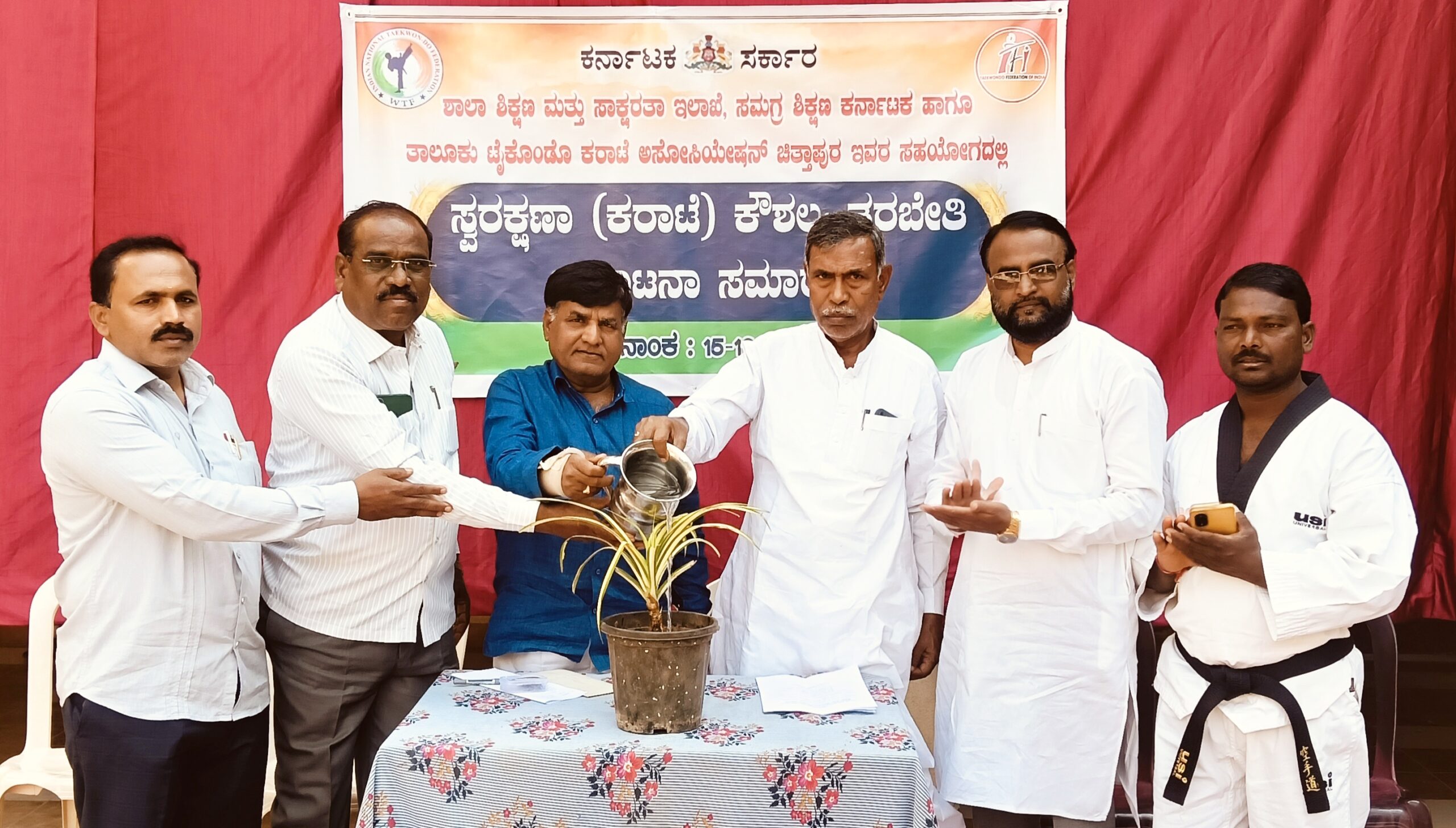 ಪಟ್ಟಣದ ನಾಗಾವಿ ಕ್ಯಾಂಪಸ್ ನ ಸರ್ಕಾರಿ ಆದರ್ಶ ವಿದ್ಯಾಲಯದಲ್ಲಿ ಶಾಲಾ ಶಿಕ್ಷಣ ಮತ್ತು ಸಾಕ್ಷರತಾ ಇಲಾಖೆ, ಸಮಗ್ರ ಶಿಕ್ಷಣ ಕರ್ನಾಟಕ ಹಾಗೂ ತಾಲೂಕು ಟೈಕೊಂಡೊ ಕರಾಟೆ ಅಸೋಸಿಯೇಷನ್ ಚಿತ್ತಾಪುರ ಇವರ ಸಹಯೋಗದಲ್ಲಿ ಮಂಗಳವಾರ ನಡೆದ ಸ್ವರಕ್ಷಣಾ (ಕರಾಟೆ) ಕೌಶಲ್ಯ ತರಬೇತಿ ಉದ್ಘಾಟನೆ ನೆರವೇರಿಸಿ ಮಾತನಾಡಿದ ಅವರು, ಸಮಾಜ ಘಾತಕರಿಂದ ಪ್ರಾಣವನ್ನು ರಕ್ಷಿಸಿಕೊಳ್ಳುವುದರ ಜತೆಗೆ ಸ್ವಯಂ ರಕ್ಷಣೆ ಮತ್ತು ಆತ್ಮಸ್ಥೈರ್ಯ ಕಲ್ಪಿಸಿಕೊಳ್ಳಲು ಕರಾಟೆ ಸಹಕಾರಿಯಾಗಿದೆ ಎಂದು ಹೇಳಿದರು.